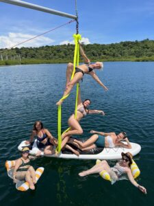 For those of you who are more susceptible to motion sickness, aerial classes on a boat may sound….well, like not a lot of fun. We assure you, the location that we anchor the boat has very calm waters. The boat is not moving while we have classes, and it is much more stable than you may think. We’ve had folks join us with varying degrees of motion sickness. There are tricks you can try (one of our participants swears by motion sickness bracelets like these). We also provide Dramamine and ginger chews to anyone who needs them!