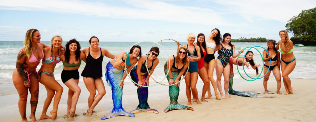Have you ever wanted to be a mermaid? (or merperson! Gender inclusive merfolk over here at this retreat 😉 ) We offer a special class on how to swim with a tail! Fins and tails provided, and you are welcome to bring your own if you have it.