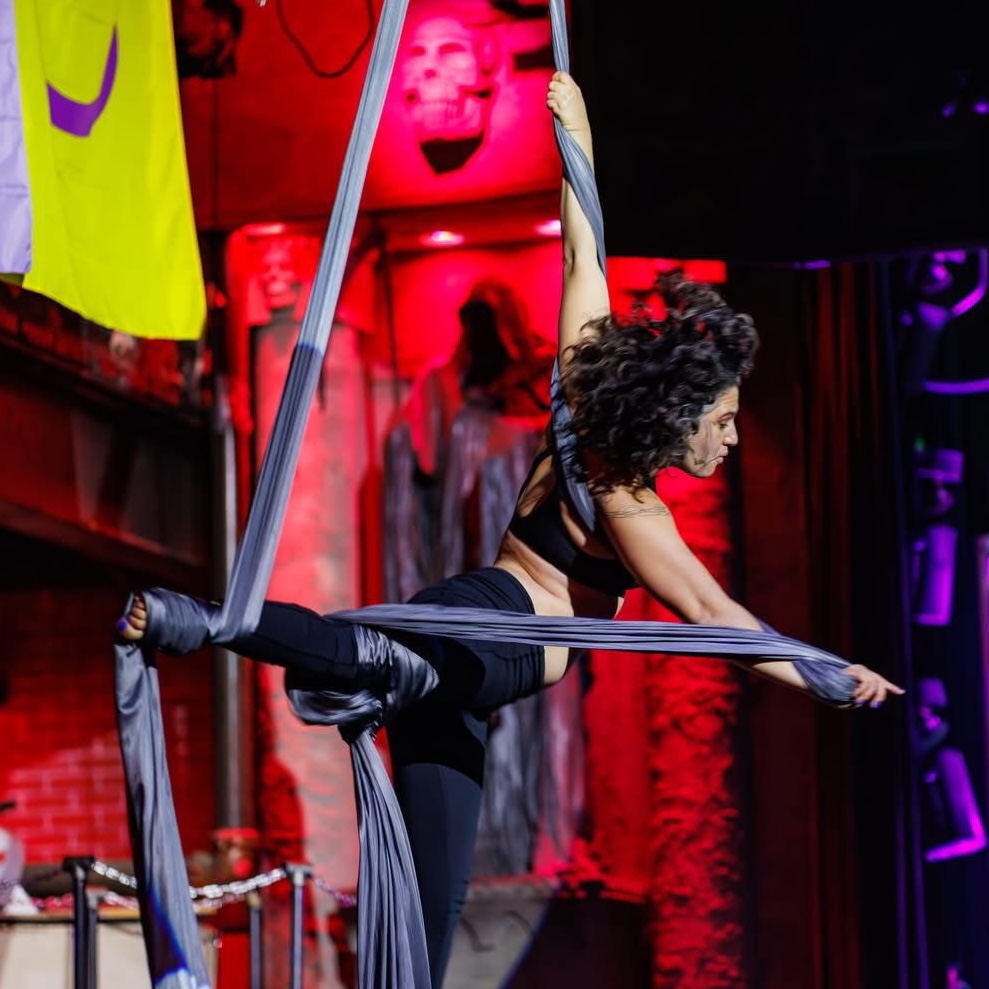 I’ve taken four PDM teacher trainings. After the first two, I opened Aerial Ambition, an aerial silks & lyra training company. Each class I progressed as an aerialist from all of the feedback on the required skills. More importantly, I learned how to structure a class for both children and adults, how to break down and modify moves to make aerials approachable for everyone, and how to push both myself and my students theatrically to express feeling and emotions through performance. Our aerial business has exploded, no doubt, due in part to the incredible training that we received from PDM.